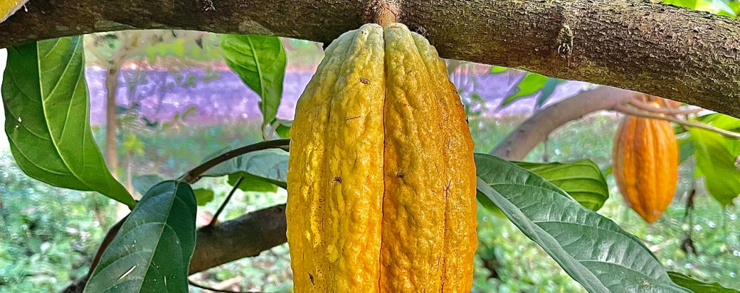 Der Edelkakao Criollo ist in Mittelamerika beheimatet. Die Bäume zeichnen sich durch lange, spitze,